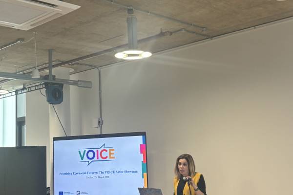 The VOICE Artist Showcase, Practising Eco-Social Futures, brought together members of the VOICE consortium, artists, and a wide range of stakeholders at the Royal College of Art in Battersea, London. The event welcomed around 50 visitors throughout the day, creating a dynamic space for exchange and engagement.