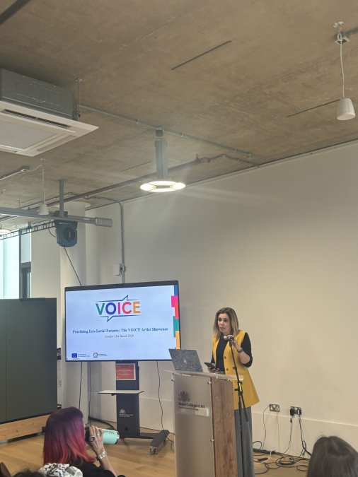 The VOICE Artist Showcase, Practising Eco-Social Futures, brought together members of the VOICE consortium, artists, and a wide range of stakeholders at the Royal College of Art in Battersea, London. The event welcomed around 50 visitors throughout the day, creating a dynamic space for exchange and engagement.